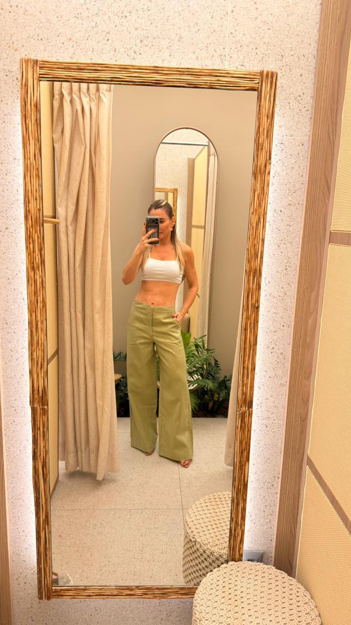 Possui modelagem reta, cintura confortável e toque natural, perfeita para compor looks frescos e elegantes do dia à noite. Uma peça atemporal que une conforto e estilo com naturalidade.