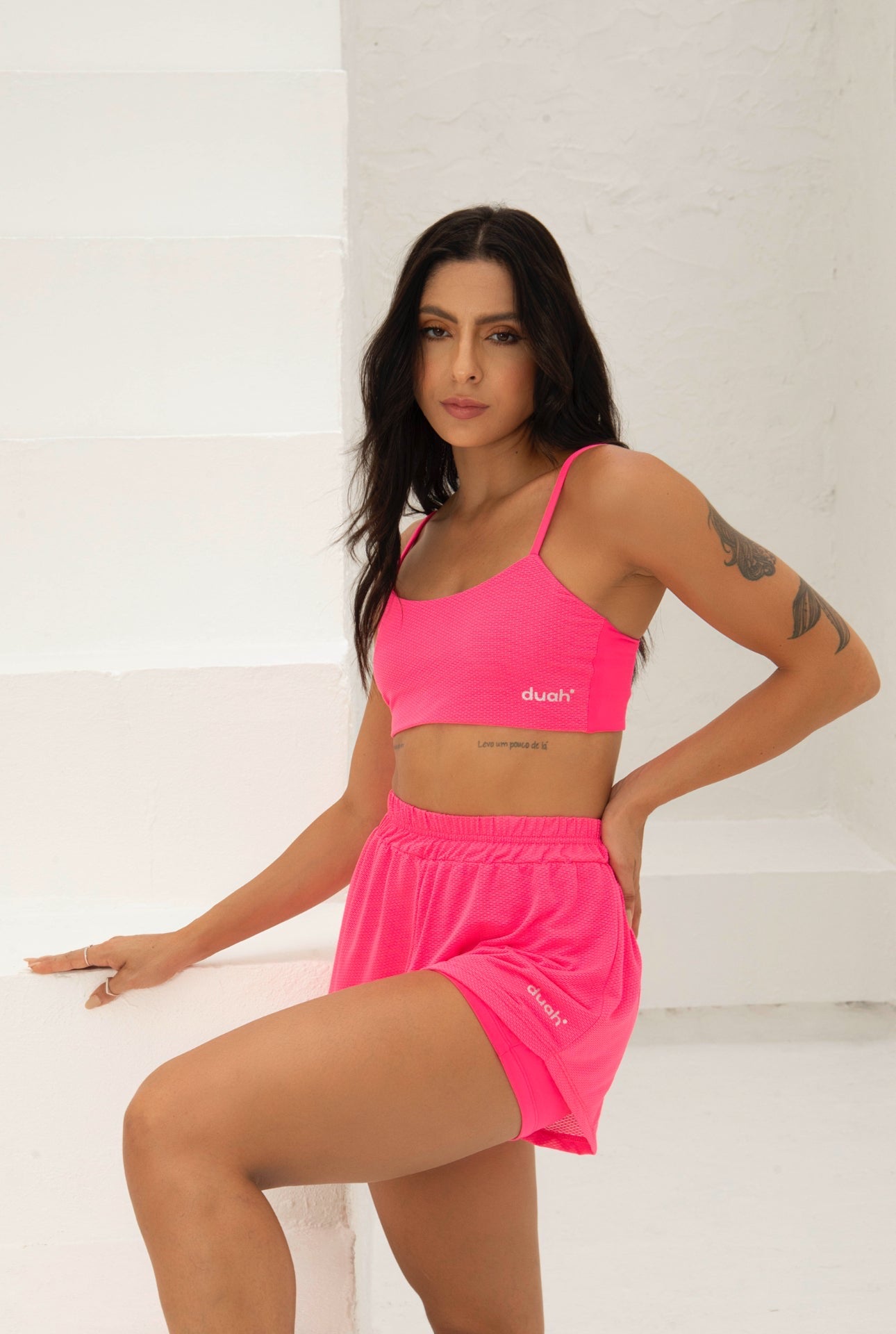 ideal para Corrida, Academia e Beach Tênis. O short é um modelo soltinho, forrado com outro short por baixo, com um tecido leve e respirável. Com o cós elástico promovendo ainda mais sensação de liberdade para os movimentos durante a atividade física.