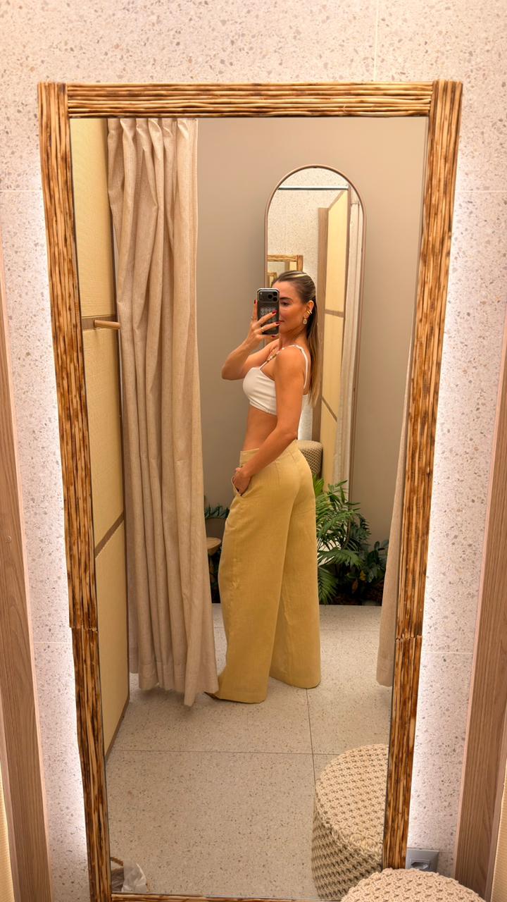 Possui modelagem reta, cintura confortável e toque natural, perfeita para compor looks frescos e elegantes do dia à noite. Uma peça atemporal que une conforto e estilo com naturalidade.