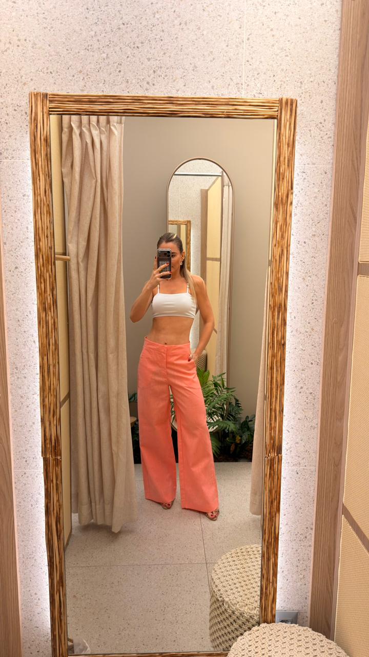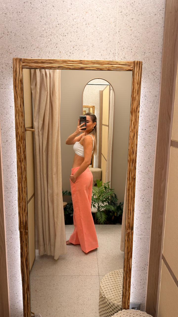 Possui modelagem reta, cintura confortável e toque natural, perfeita para compor looks frescos e elegantes do dia à noite. Uma peça atemporal que une conforto e estilo com naturalidade.