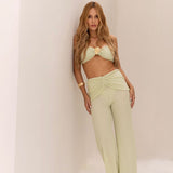 Calça Maré confeccionada no mesmo tecido dos biquínis, com textura suave e toque fresquinho. Possui drapeado frontal com regulagem por cordão, que valoriza as curvas e modela o corpo com conforto e charme. Ideal para compor looks leves e sofisticados à beira-mar.