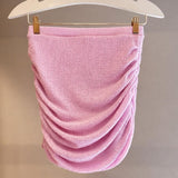 Saia em malha texturizada, com drapeado lateral que valoriza a silhueta e traz um toque sofisticado à peça.