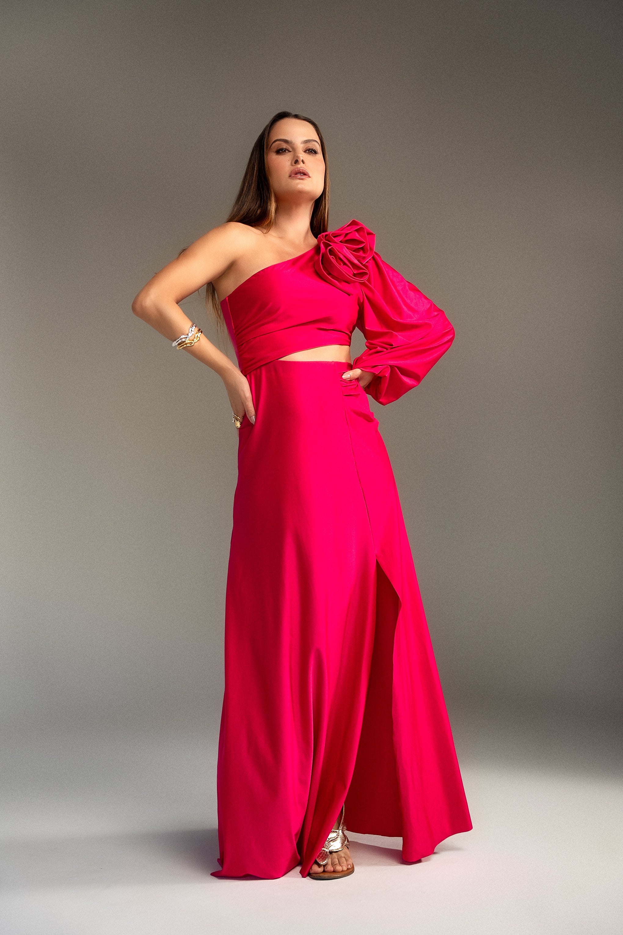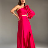 Vestido nula manga com flores no ombro e fenda na lateral, é uma peça de vestuário elegante e sofisticada. As flores aplicadas no ombro adicionam um detalhe romântico e delicada, enquanto a fenda na lateral contribui com um elemento sensual proporcionando maior liberdade de movimento, sendo uma escolha atraente para diversas ocasiões.